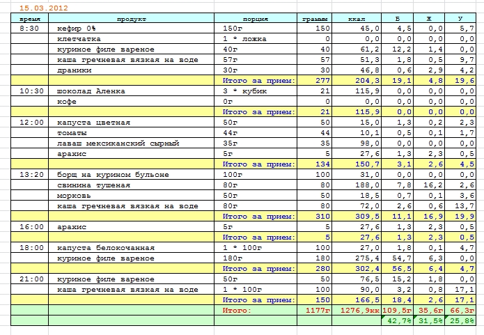 Сегодня с балансом не очень получилось, с белком перестаралась :( да и жирами что-то не то.