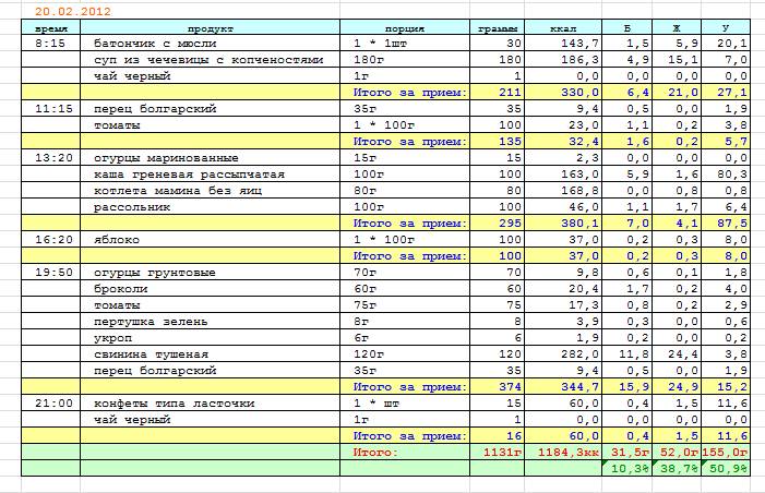 Вот мой рацион. С БАлансом БЖУ продолжаю бороться, но честно говоря не получается :(