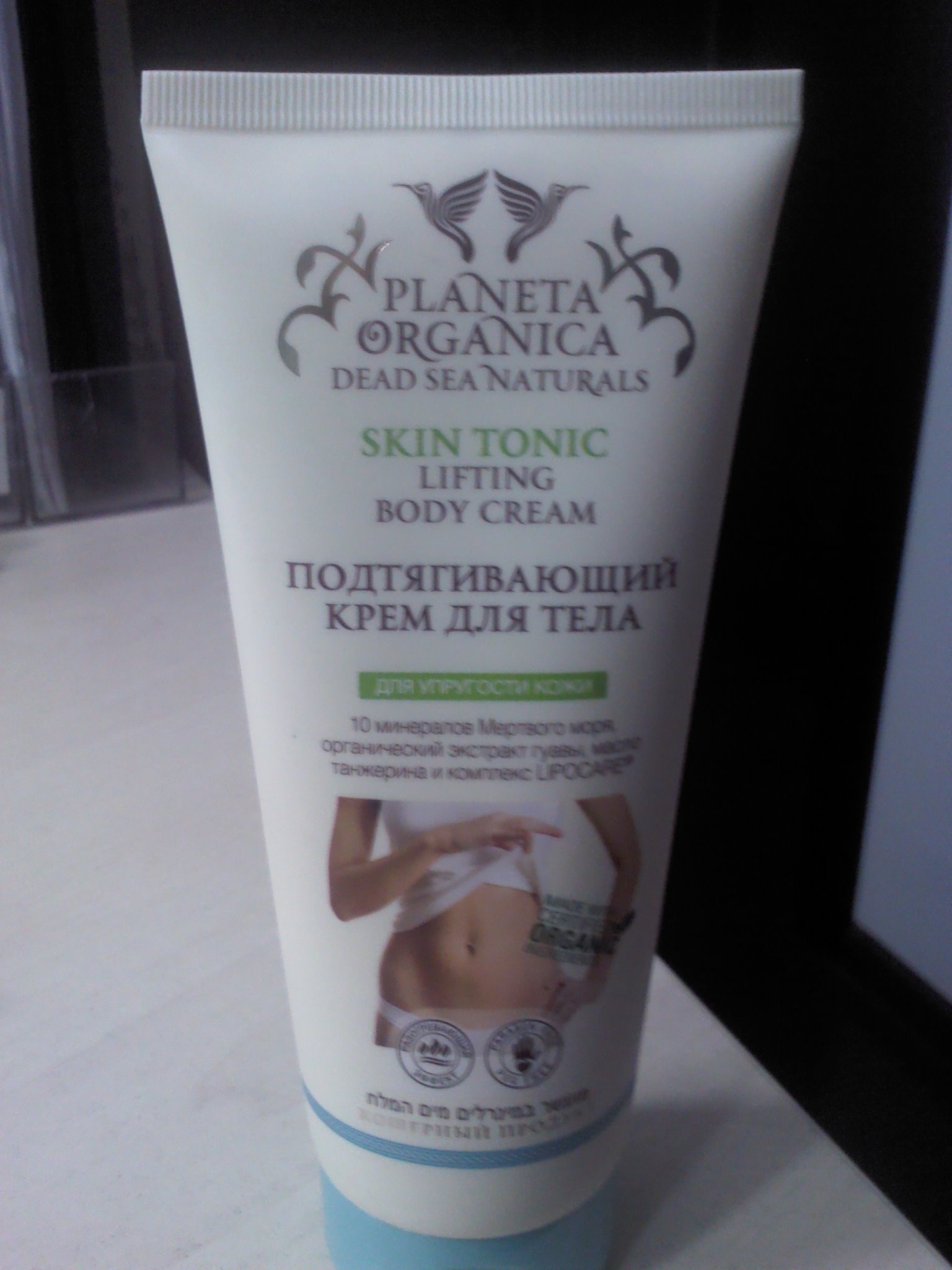 купила,девочки,сегодня кремушку,очень уж хвалили его. Skin tonik lifting body cream, а производитель Planeta organica. До этого тоже пробовала их продукцию,что-то понравилось,какие-то средства оставили равнодушной. В аннотации написано: подтягивающий крем для упругости кожи улучшает микроциркуляцию и лимфодренаж в тканях,придает коже упругость и эластичность...решила в качестве пробы взять,в дополнение к спорту,по отзывам эффект есть уже через 2недели,мало того что кожа упругой становится,так еще и целлюлит пропадает. Проверим на себе