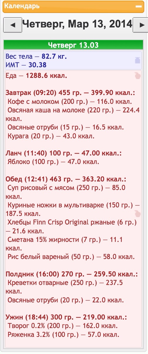 Видимо, придется таки ккал урезать. На 1400 не худеется при всем ПП.
