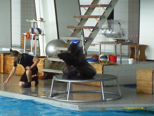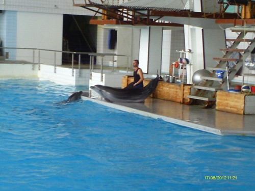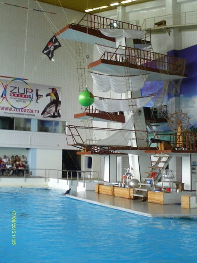 В прошлые выходные выбрались в Набережные Челны с детками. Там есть дельфинарий, вот туда то мы и поехали. Живут там 6 дельфинов Степан и Софья - это семейная пара, у них этим летом появилась малышка - девочка. Пока без имени, на сайте дельфинария идет конкурс на лучшее имя для этой девочки. Условие только одно - имя должно начинаться на букву С, как её родителей. Вторая семейная пара Инна и Иван, их дочь (в прошлом году родилась) Инга. Моржиха Даша. Зал оформлен как пиратский корабль, красиво. Вообще дельфины дарят много позитива!!! Впервые слышала как они поют, не похоже на то-что по-телеку (ультразвуковой писк) их пение больше похоже на лай щенков