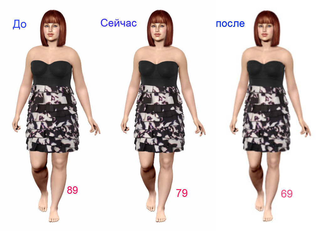 Вот моя фигура с весом сначала похудения, сейчас и то, что будет после.