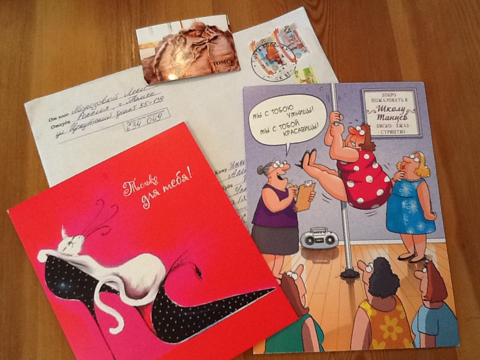 Frederikowna, а тебе по почте ничего не приходило? Ну вот и ответ на вопрос.. Пошла я на почту, а там куча корреспонденции, и письмо от нашей Лесеньки! Прям на почте и открыла и начала читать.. и глаза как всегда на мокром месте.. Катрин мне говорит, ну давай ещё разревемся на всю почту... очень уж написано... что слезы сами наворачиваются! убрала письмо и пошли по делам.. вот дома уже спокойно прочитала... Слова волнительные очень, да и я крайне сентиментальна.... Лесюнь спасибо за письмо! так приятно получать, дочери магнит понравился.. сразу на холодильник... Классная у вас в Томске капустка... в Кемерово тоже такая есть.. Но ваша прям стильная такая!