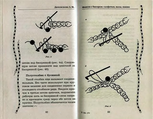 Все сделала сама. Все вручную. Вяжу крючком. Нитки типа ирис или роза, бисер чешсккий №10, крючек №1,1. А вяжу так - крючок вводим под обе дольки петли, захватываем нитку и вытаскиваем петлю на крючок, на крючке получилось две петли, потом только придвигается бисерина, захватывается нитка за бисериной и провязывается в две петли на крючке. Тогда бисернки получаются одна над другой. Есть второй способ: бисерину придвигаем вплотную к крючковой петле, а затем провязываем столбик – крючок вводим под обе дольки петли, захватываем нитку за бисериной и вытаскиваем петлю на крючок, на крючке получилось две петли, захватываем опять нитку и провязываем в две петли на крючке.