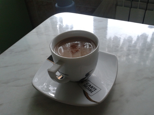 Чай. Я пускала на глаз: воду, молоко , Чай черный,Имбирь (свежий корень) – кусочек 3см Х 3см,мед по вкусу