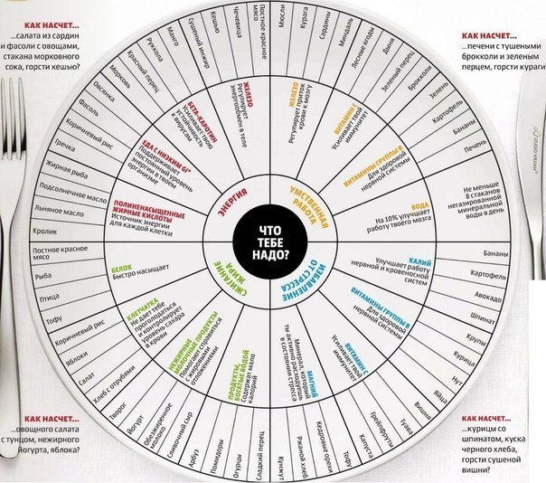 Re: Что есть, чтобы худеть!Кошака, я тут одну табличку нашла)) просто магический круг какой-то!))) Разбит на 4 сектора в зависимости от того, какой результат нужен!) Америку не открою и не пытаюсь даже, просто очень кратко и лаконично всё там!))) Может будет кому-нибудь полезно!)