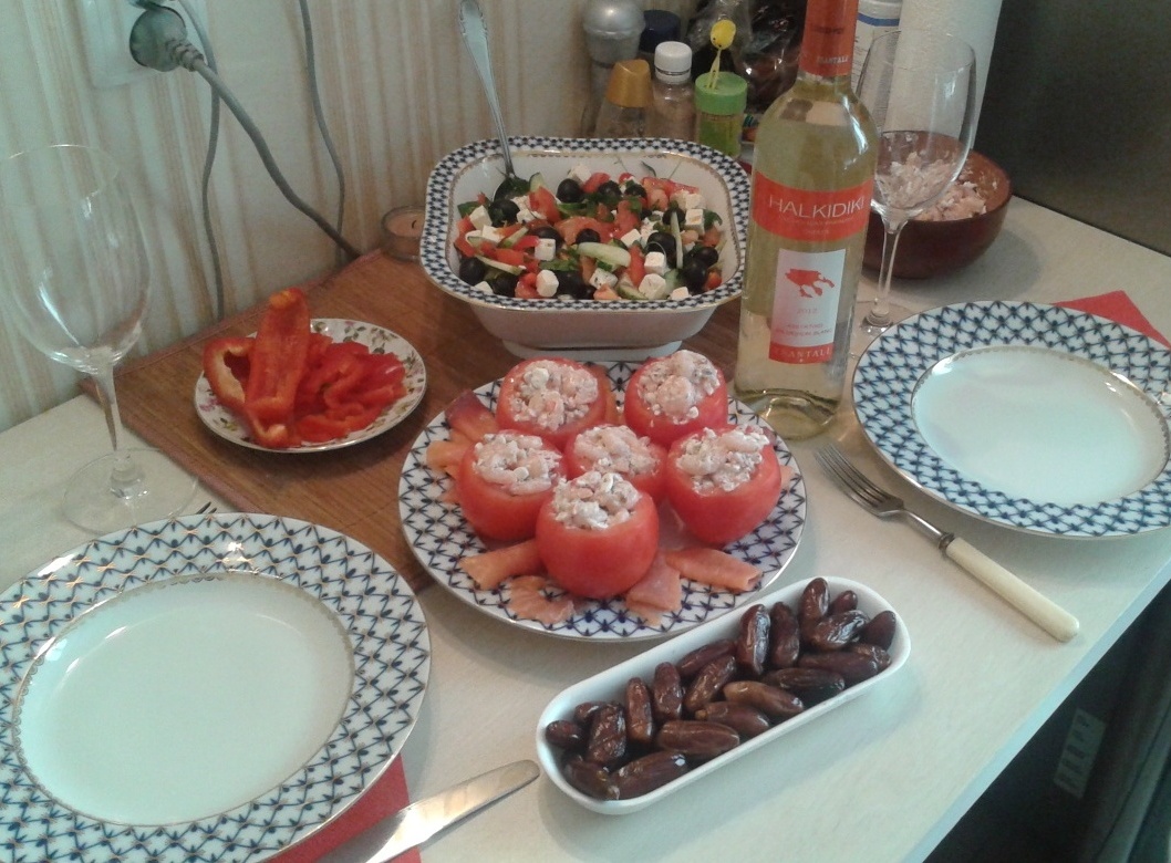 У помидорок вырезаем сердцевину и фаршируем всей этой вкуснятиной!