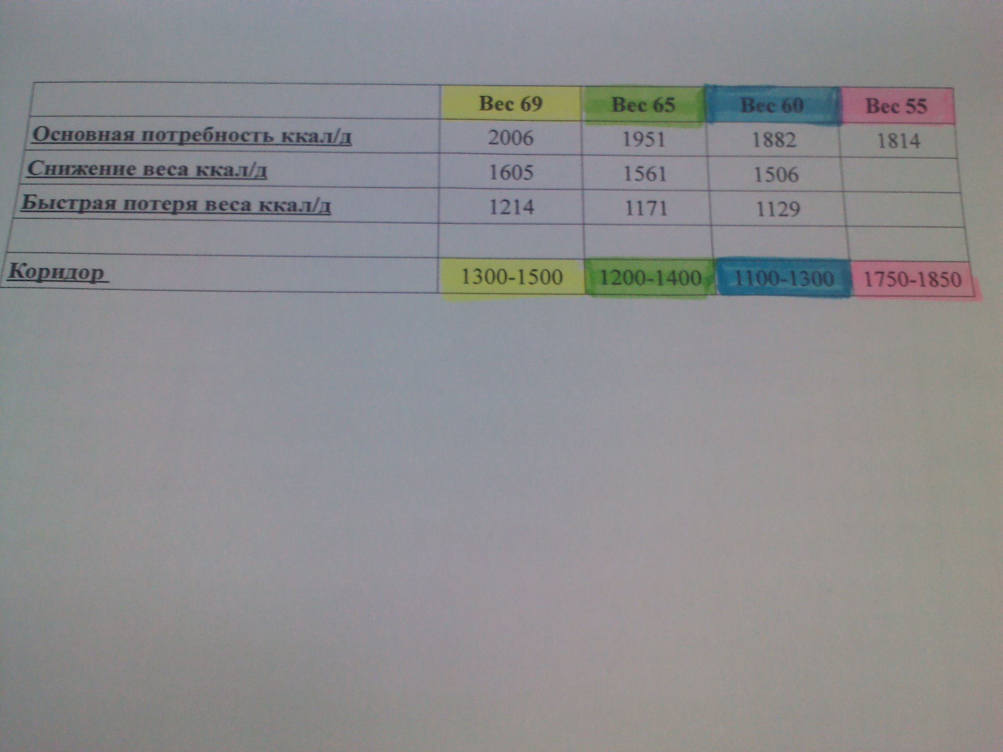 Re: Коридор калорийдевочки,подскажите мне,пожалуйста,по таблице правильный ли себе коридор посчитала или лучше скорректировать?