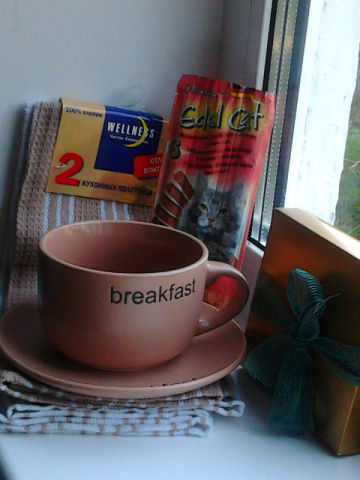 это мое желание бульонница, да еще и с блюдцем + 2 полотенца такого же цвета и коробочка с сюрпризом! Ой, и еще для кошечки здесь колбаски
