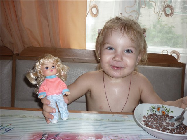 Re: Волшебная почта. Доставлено!Ну наконец-то забрали!!! Спасибо дорогой Изюминке (Леночке) за бигуди двух видов, полотенце желтенькое мягенькое, куклу для Манюни и открытку!!! Больше всего подаркам довольна Маша!
