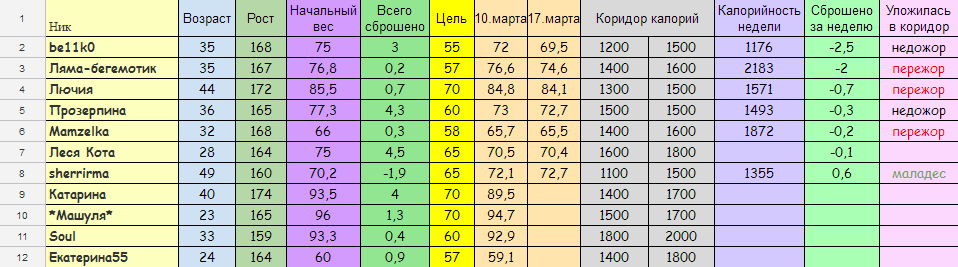 2. Участвуют только те кто считает калории. Для тех кто на форуме более полугода разрешается примерный подсчет с указанием калорийности в отчетах.