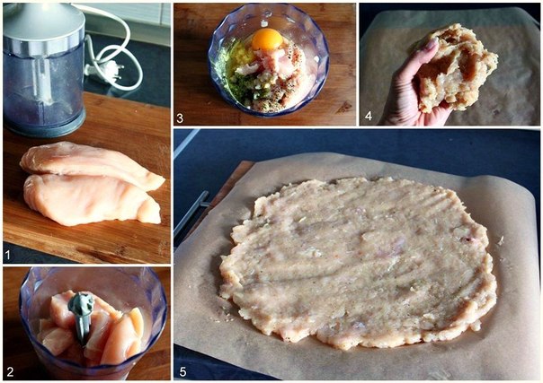 * Куриную грудку размолоть в блендере