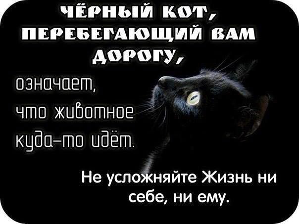 Я кошек люблю, особенно чёрных. ПОэтому считаю, что если кот перешёл дорогу - это к счастью ![]() Диеты для похудения на http://www.nadietah.ru Истина ничуть не страдает от того, что кто-то её не признаёт. Ф.Шиллер