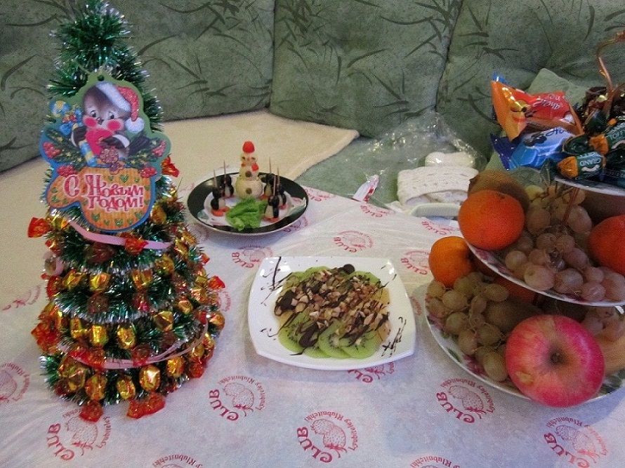 Затем грудку и клюв у снегиря делаем красную, из помидора, а спинку и глазки из маслины,