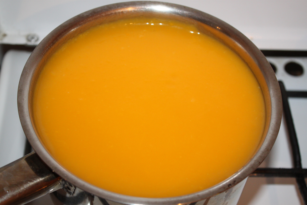Потом надо все измельчить блендером, полагаю. что можно и обычной толкушкой. У меня блендер погружной, так что я перемалывала прямо в кастрюле. На всякий случай я вылила часть воды в кружку и добавляла в пюре, чтобы добиться той консистенции, которая мне понравилась.