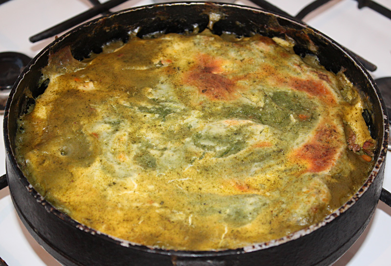 Помятуя, как девушки здесь приводили примеры уменьшения калорийности картофельного пюре, я сварила картофель вместе с остатками кабачка и сделала пюре с небольшим количества воды и молока. Шпинат отдельно слегка отварила и тоже сделала пюре, смешала с кабачково-картофельным. Каюсь с жидкостью слегка переборщила, пюре получилось жидковатое.